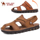 金戈 骆驼男鞋2017夏季两用透气皮凉鞋包头罗马沙滩鞋户外休闲鞋