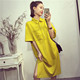 欧洲站夏装女2017新款翻领开叉短袖polo衬衫连衣裙中长款修身显瘦