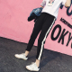 【清仓】韩版侧边白色拼皮小脚黑色裤子哈伦九分裤休闲裤女
