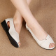 夏季新款鱼嘴中年妈妈凉鞋真皮软底休闲中老年人女鞋坡跟防滑凉鞋
