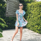 泳衣女带袖游泳衣连体裙式小胸聚拢斜肩显瘦遮肚保守大码沙滩泳装