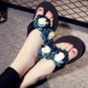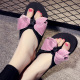沙滩鞋女拖鞋女夏坡跟平底防滑花朵凉拖鞋女时尚外穿人字拖鞋海边