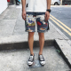 原创潮牌印花男士牛仔短裤韩版宽松破洞水洗牛仔五分裤男士中裤潮