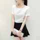 2017夏季新款韩版圆领短袖上衣简约时尚套装女气质名媛短裙两件套
