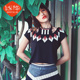 买2送1-迷阵原创夏民族风修身上衣打底显瘦镂空露肩印花短袖T恤女