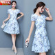 夏天装新款中裙30-50岁大码妈妈女装修身拼接显瘦雪纺印花连衣裙