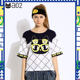 a02珍藏系列2016活力少女系趣味格纹猫圆领T恤 DTR1B0041KT