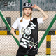 a02新款玩酷拼接风搞怪字母猫宽松套头卫衣女装潮 D1R1A0831KT