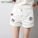 古西亚 新款白色牛仔短裤女夏宽松翻边贴布阔腿短裤破洞牛仔短裤