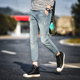 九分牛仔裤男士春季薄款复古破洞九分裤青少年小脚裤修身9分裤潮