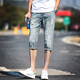 牛仔短裤男2017夏季新款男士破洞日系潮男牛仔七分裤男夏天男裤子