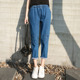 2017春季新款韩版高腰宽松牛仔裤女松紧腰垮裤女九分哈伦裤子女