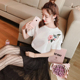 2017夏新款女装韩版宽松短袖甜美气质纯色白色刺绣花朵T恤女上衣