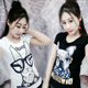 2017春夏新款女T恤卡通亮片图案修身显瘦新潮半袖棉T百搭打底衫
