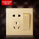 KOCOO卡罗兰F8香槟金开关插座面板一开五孔插座 双控开关电源插座