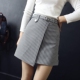 2017初春新款高腰修身不规则短裙百搭金属圈装饰显瘦A字裙半身裙