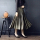 金属色百褶裙春装2017新款女松紧腰修身a字裙中长款金丝绒半身裙