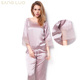 桑罗真丝睡衣女春夏季长袖性感欧式桑蚕丝两件套丝绸家居服套装