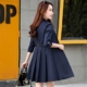 2017新款韩版修身气质显瘦中长款小清新雪纺连衣裙 a字裙子女夏季