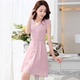 雪纺连衣裙女夏 2017新款韩版修身显瘦V领短袖系带中长款裙子夏季