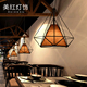 现代简约餐厅灯吊灯三头创意个性复古吧台书房吊灯钻石铁艺鸟笼灯