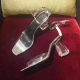 2017夏季方头粗跟凉鞋女透明高跟女单鞋性感一字带水晶粗跟高跟