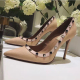 欧美潮鞋女士裸色黑色尖头铆钉红底鞋尖头高跟鞋侧空细跟单鞋女鞋