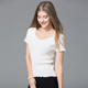 Vikimiya夏季欧美纯色纯白v领短袖t恤女短款百搭竖条纹针织衫上衣
