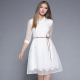 Vikimiya2017新款气质收腰五分袖连衣裙女中长款修身显瘦a字款潮