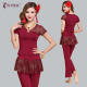 衡美 广场舞服装套装夏季新款 短袖蕾丝上衣七分裤裙裤跳舞衣服女