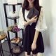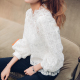 春秋装新款韩版大码欧根纱宽松镂空雪纺蕾丝衫两件套上衣女打底衫