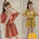2017夏季新款韩版连衣V领短袖碎花宽松显瘦雪纺连体裤裙短裤女装