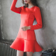 秋冬季新款女韩国荷叶边蓬蓬鱼尾裙修身收腰长袖太空棉连衣裙春装