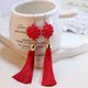 红色玫瑰花朵耳环长流苏饰品无耳洞耳夹款夹式耳钉结婚新娘耳饰