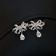 韩国耳饰耳环坠耳夹无耳洞蝴蝶结锆石耳钉女925纯银耳针防过敏