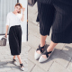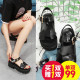 毅雅2017夏新款韩版 松糕厚底一字拖 金属装饰露趾中跟凉鞋