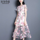 2017新款女装v领小清新欧根纱碎花连衣裙长款喇叭袖网纱裙子女夏