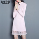 春装2017新款女针织小黑裙长袖蕾丝连衣裙时尚名媛套装两件套