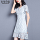 夏装2017新款短袖蕾丝镂空连衣裙女中长款气质名媛收腰鱼尾裙子