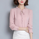 雪纺长袖衬衫女蝴蝶结系带打底衫2017春装新款女装百搭短袖白衬衣