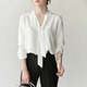 2017春季韩范 V领蝴蝶结飘带学生百搭时尚OL气质雪纺长袖白衬衫女
