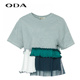 QDA女装春夏新品商场同款时尚个性拼接撞色百褶T恤上衣79203102