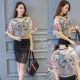 镜语2017春夏新款韩版圆领套头鲤鱼刺绣短外套五分袖欧根纱上衣女