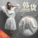 镜语 2017夏女装韩版假两件 网纱刺绣复古白色蕾丝拼接短款连衣裙