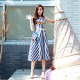 2017夏女装迪丽热巴同款条纹长裙亮片刺绣A摆V领露背无袖连衣裙