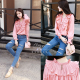 瑶台镜2017春夏欧美新款波纹短袖衫T恤+洗水磨破牛仔裤休闲套装女