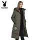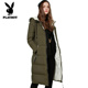 花花公子羽绒服女中长款宽松大码秋冬装连帽加厚外套中老年妈妈装