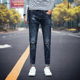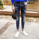 韩版春夏款九分牛仔裤男式小脚裤青少年弹力9分裤哈伦裤休闲裤子