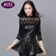 2016修身镂空镶钻绣花皮裙包臀连衣裙短裙长袖秋a字裙打底女裙子