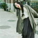 猫迷森林森女日系草绿不对称设计长款棉麻开衫长款衬衣女春新0073